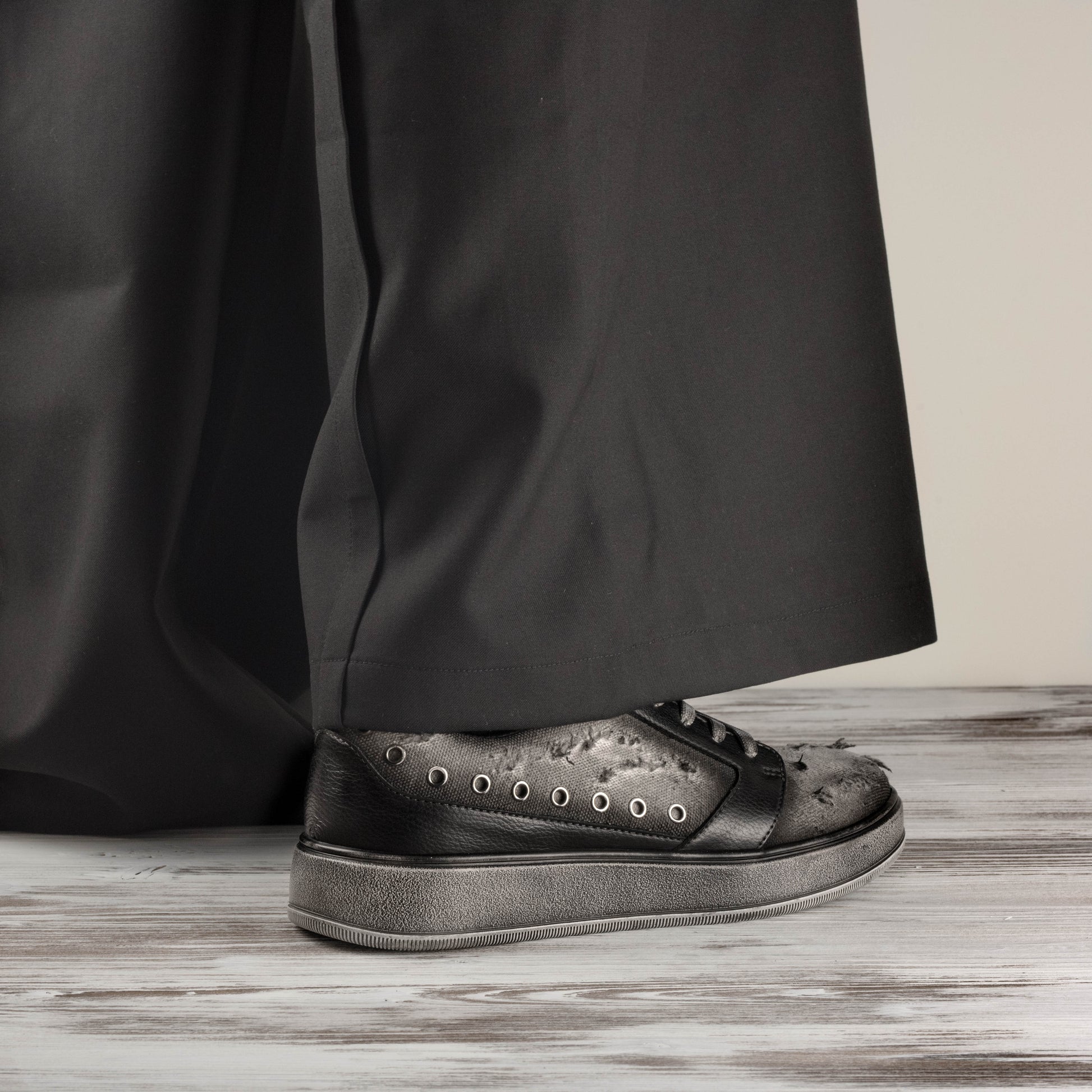 • Caution: Handmade worn effect, each pair is different